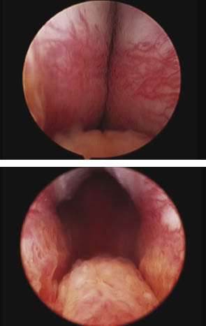 Cystoscopy is conducted by gently advancing a standard 20F sheath to assess urethral condition, to rule out obstructive median lobe, assess degree of trebeculation and other obstructive sequelae, visualize the orifices and to plan implant placement. The sheath is then advanced into the bladder and the telescope bridge is replaced with the UroLift system. Actual delivery of the UroLift implant is achieved in a relatively straightforward manner by the following steps: